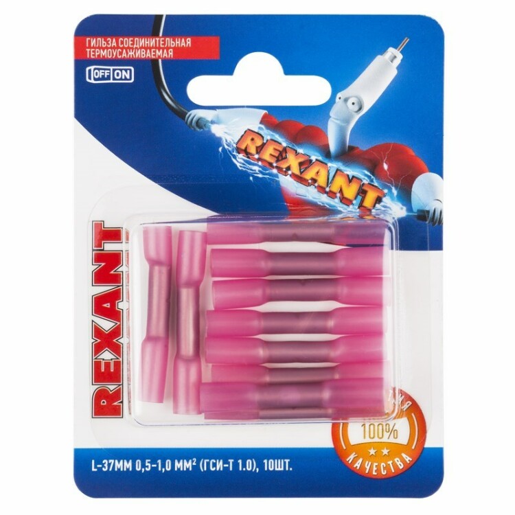 Соед гильза изол термоус L-37 мм, 0.5-1 мм?, ГСИ-т 1.0 / ГСИ-т 0,5-1,0 / KY-1, красн, в уп.10 шт.