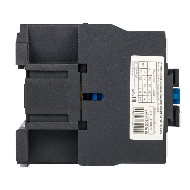 Пускатели ПМЛ EKF Basic состоят из корпуса, закрепленных в нем неподвижных контактов, подвижных контактов, которые закреплены в подвижной части магнитной системы. Неподвижная часть магнитной системы закреплена жестко в корпусе ПМЛ. Пружина препятствует смыканию контактов. При подаче напряжения на катушку управления в магнитной системе пускателя возникает магнитное поле, которое, преодолевая сопротивление пружины, смыкает магнитную систему и замыкает контакты. При отключении напряжения с катушки управления пружина размыкает контакты. Различия между контакторами ПМЛ Basic и КМЭ PROxima состоит в разной коммутационной износостойкости. Если необходим контактор для жестких условий работы с частым включением, следует применять КМЭ EKF PROxima. Возможна коммутация алюминиевым и медным проводом.