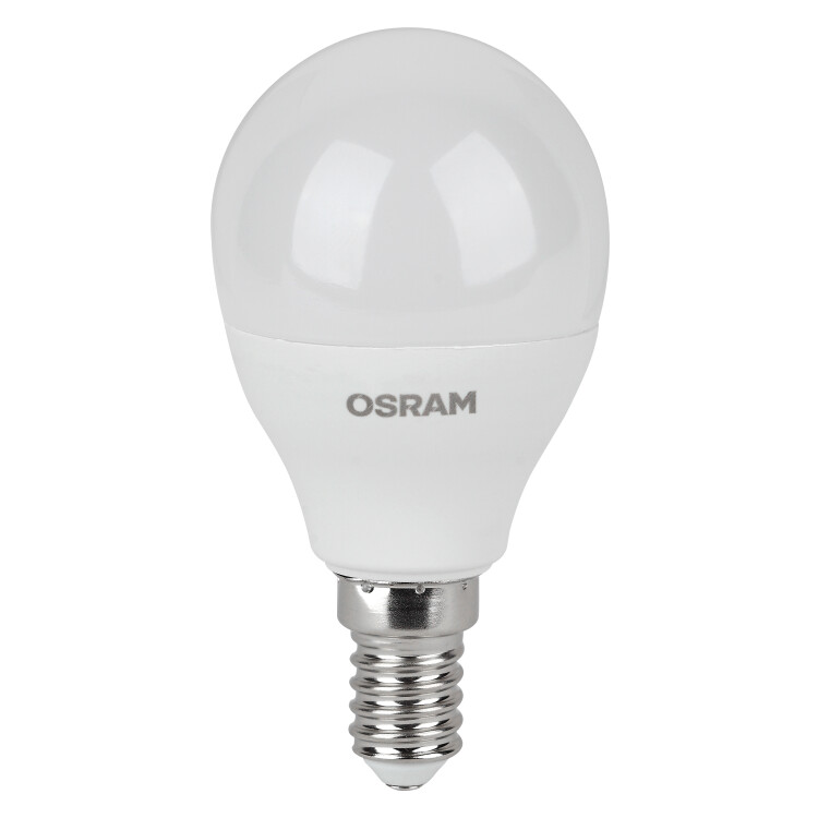 Лампа светодиодная OSRAM LED Value P, 560лм, 7Вт (замена 60Вт), 6500К (холодный белый свет). Цоколь E14, колба P, угол пучка 180°. Исполнение колбы матовое, пластик. Напряжение питания 220-240В. Товар сертифицирован.