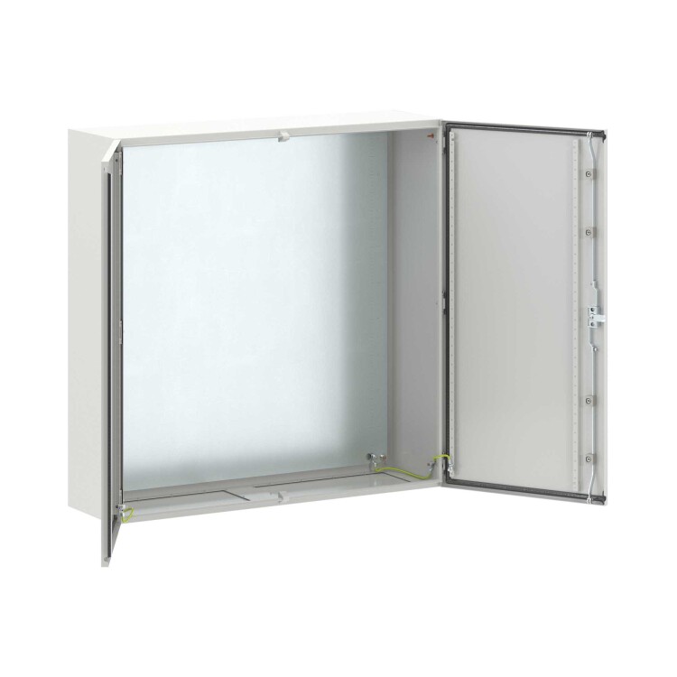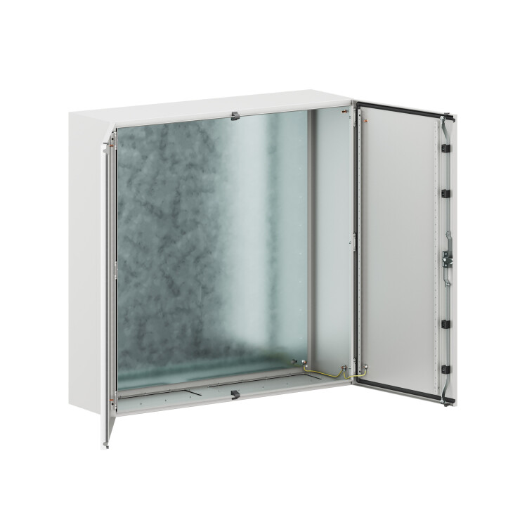 Навесные корпуса серии STE предназначены для систем автоматизации и распределения электроэнергии. Корпус, дверь, фланец серии STE изготавливаются из листовой стали толщиной 1,5 мм с атмосферостойким порошковым покрытием, цвет RAL7035. Монтажная плата изготовлена из оцинкованной стали толщиной 2,5 мм. Степень защиты IP55, ударопрочность IK10, сейсмостойкость 9 баллов по шкале MSK-64, климатическое исполнение УХЛ1, ОМ2, ОМ3, группу горючести согласно Г1. Комплект поставки: корпус, двустворчатая дверь, монтажная плата с двунаправленной разметкой, дверные рейки, ручка, сплошной фланец для ввода кабеля 2 шт., комплект заземления с проводами заземления. Габариты 1000x1000x300 (ШхВхГ) мм.