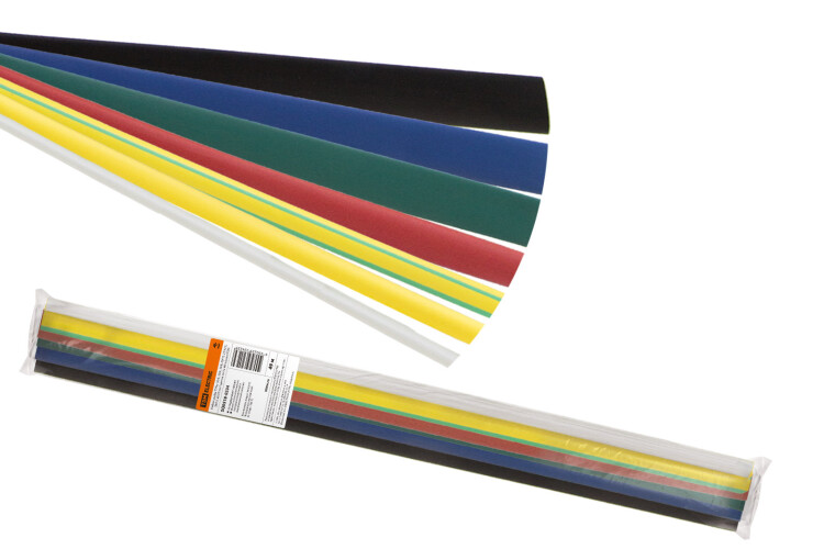 Набор трубок ТУТнг 10/5, 12/6, 16/8, 20/10, 25/12.5, 30/15, 40/20 по 7 цветов по 1м (49 м/упак) TDM