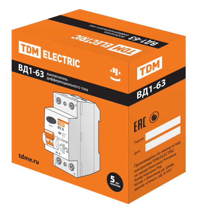 УЗО ВД 1-63 2Р 80А 30мА ТДМ