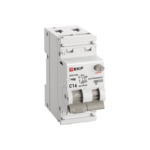 Автоматический выключатель дифференциального тока АВДТ-63N PROXIMA EKF – это аппарат, сочетающий функции автоматического выключателя с электромеханическим или электронным УЗО. При обнаружении автоматическим выключателем в защищаемом участке сети тока утечки (повреждения) на землю или сверхтока (тока перегрузки или короткого замыкания) происходит срабатывание устройства, приводящее к отключению защищаемой сети. Особая конструкция рычага обеспечивает информативность устройства, указывая на причину срабатывания (опущена только часть рычага – короткое замыкание или перегрузка, опущены обе части рычага – ток утечки). Особенностью данной серии АВДТ является усовершенствованная конструкция. Данные выключатели имеют пластиковые крышки, закрывающие доступ к винтовым зажимам и служащие для опломбирования винтовых клемм, что исключает несанкционированный доступ к проводникам. Автоматические выключатели дифференциального тока АВДТ-63N PROXIMA EKF соответствуют ГОСТ IEC 61009-1. Возможна коммутация алюминиевым и медным проводником.