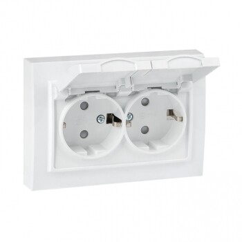 Розетка двойная с крышкой EKF серии Минск с заземлением, со шторками и крышкой станет отличным решением для квартиры и загородного дома для подключения устройств. Изделие со степенью защиты IP44 обеспечит безопасность использования во влажных и пыльных помещениях, например, на кухне или в ванной. Компактный механизм упрощает монтаж изделия. Зафиксированные распорные лапки надежно фиксируют устройство в монтажной коробке.