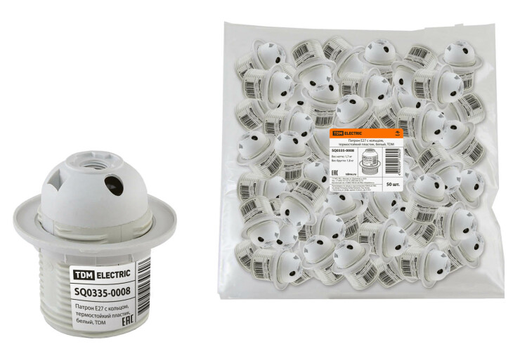 Патрон Е27 с кольцом, термостойкий пластик, белый, TDM
