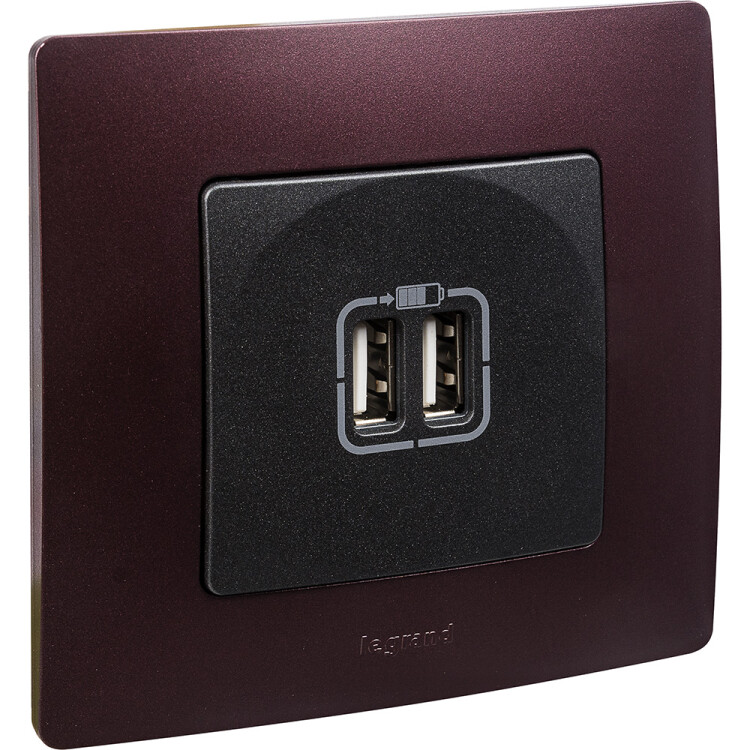 Legrand Etika Антрацит Розетка USB 2-ая 240В/5В 2400мА