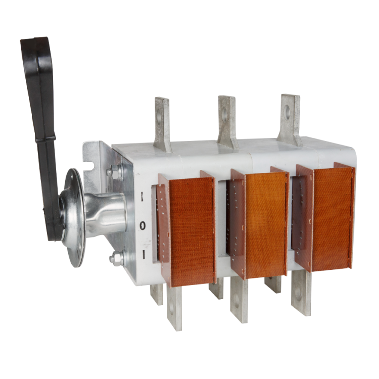 Выключатель-разъединитель 3 полюсный на номинальный ток 630 А, в котором установлена съемная рукоятка.
