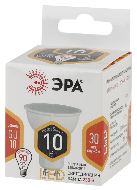 Бытовая светодиодная лампа ЭРА Серии Стандарт, создаёт яркое ровное освещение и экономит до 90% электроэнергии по сравнению с лампой накаливания с аналогичным световым потоком. Светит теплым светом с жёлтым оттенком - такая цветовая температура эффективна для отдыха и уютной атмосферы в доме. Используется в потолочных, настенных, настольных светильниках, в люстрах и бра. Мгновенно включается и не нагревается.