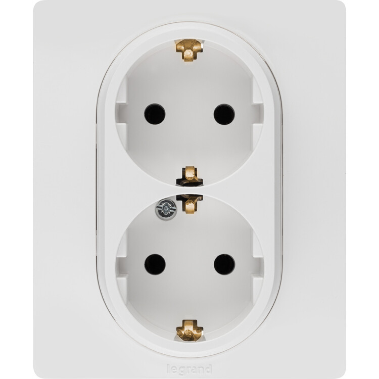Двойная розетка с заземлением Legrand Etikaдля скрытого монтажа, цвет белый. Максимальный ток 16 А, максимальная мощность 3680 Вт. Применяется в зданиях, оборудованных для повышения безопасности проводкой с заземлением (с защитным проводником). Позволяет компактно разместить две розетки, используя одно место установки.
