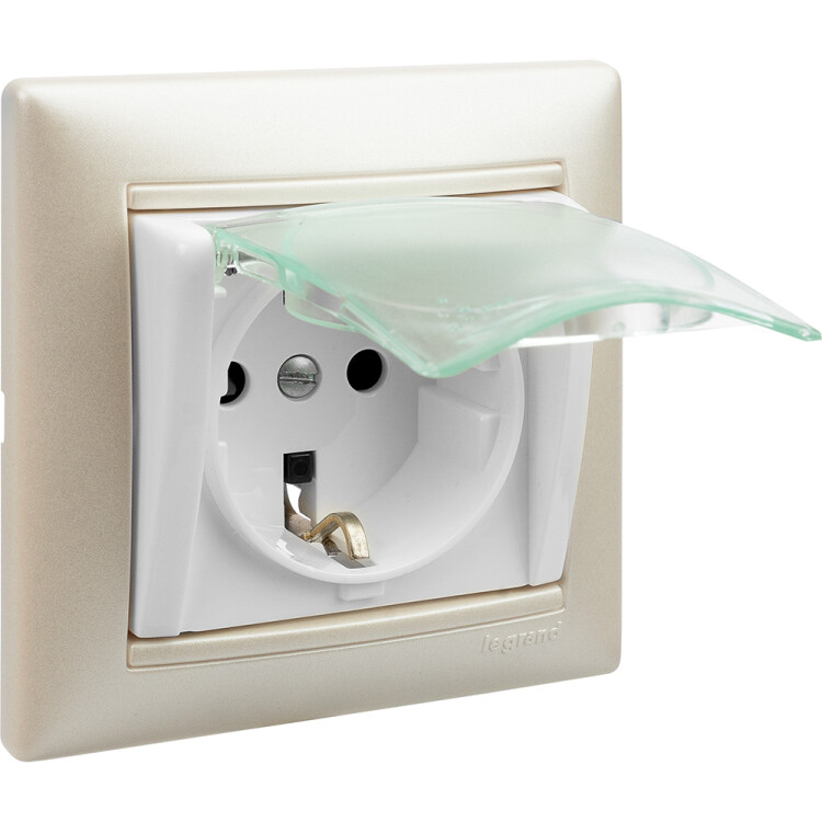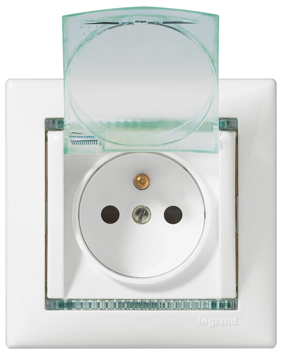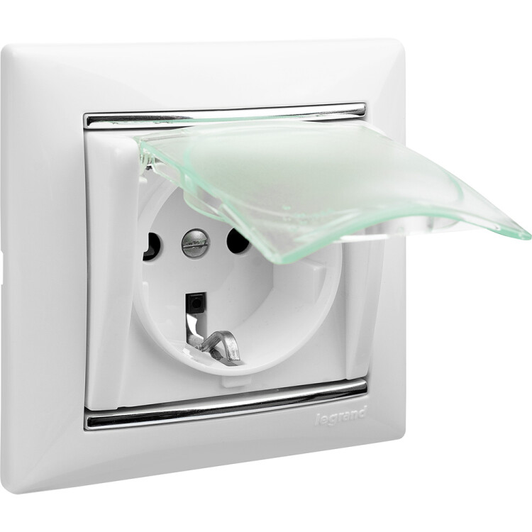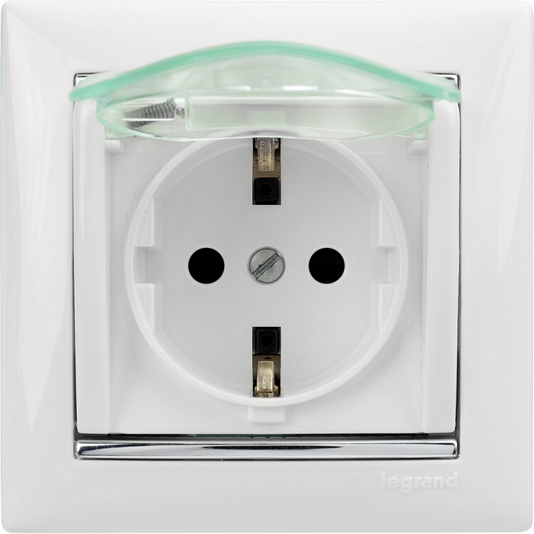 Розетка с заземлением IP44 - Legrand Valena - со шторками с защитной крышкой 16А 250В винтовые зажимы - белый