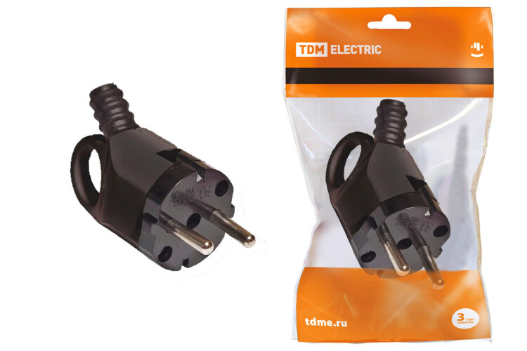 Вилка с/з угловая с ушком 16А 250В черная TDM (35/350шт)
