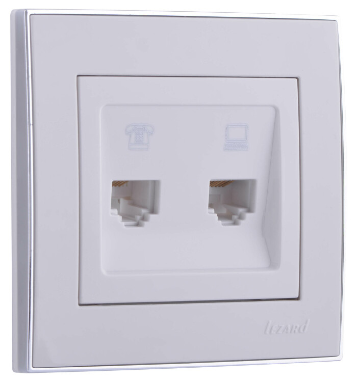 RAIN Розетка компьютер+телефон белый с бок. вст. хром LEZARD (10шт/120шт)