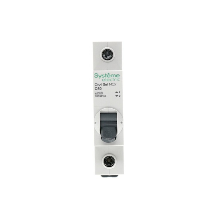 Автоматический выключатель серии City9 Set Systeme Electric, 1-полюсный, номинальный ток 50 А, характеристика С, Icn = 4.5 кА. Применяется в электрических сетях напряжением 230 В. Предназначен для защиты от перегрузок и токов короткого замыкания. Оснащен механизмом «мгновенной коммутации». Ударопрочный корпус из специального пластика с 6 металлическими заклепками. Безопасные клеммы исключают попадание кабелей в заклеммное пространство.