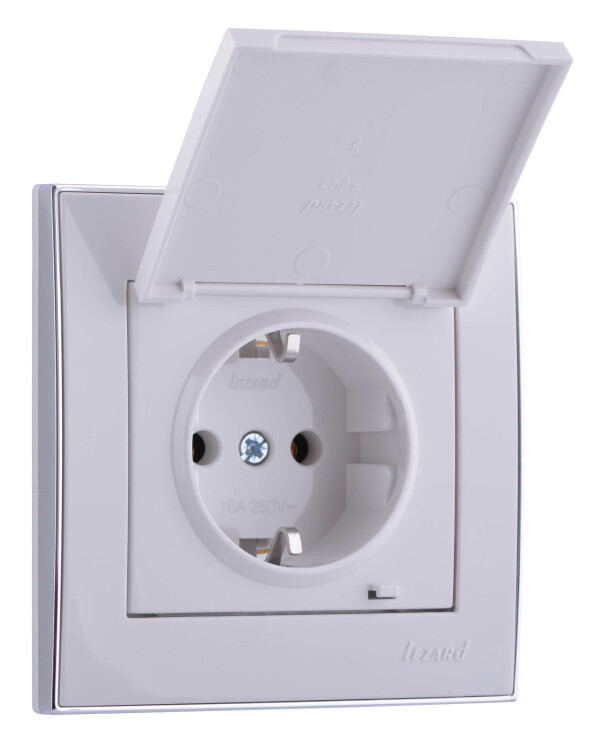 RAIN Розетка 1-ая с/з с крышкой керамика белый с бок. вст. хром LEZARD (10шт/120шт)