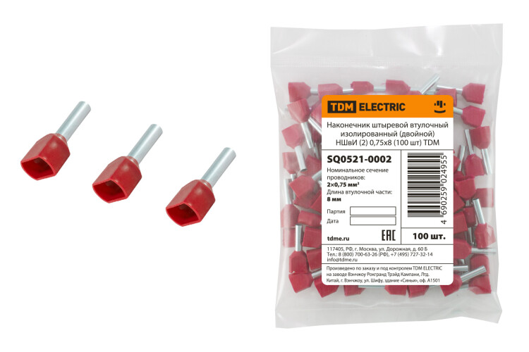 Применение:Для оконцевания многожильных гибких проводов и подключения их к контактным зажимам различного электрооборудования. Материалы:Наконечник-гильзы - латуньИзоляция - ПВХ (поливинилхлорид)Преимущества:Простой и быстрый монтаж: наконечники полностью заменяют обязательный процесс обслуживания многопроволочных медных проводов при монтаже различного электрооборудованияНадежный электрический контактВозможность подключения сразу двух проводов при использовании наконечников НШвИ (2)Легкий подбор нужного размера благодаря цветной маркировке манжет и наличию типоразмера наконечника на групповой и индивидуальной упаковке 0: Применение:Для оконцевания многожильных гибких проводов и подключения их к контактным зажимам различного электрооборудования.