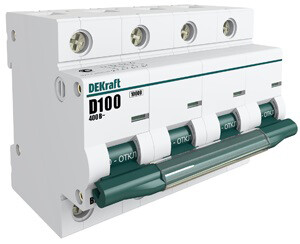Автоматический выключатель серии ВА-201 DEKraft; 4P; номинальный ток 63 А; характеристика С; отключающая способность 10 кА; ширина модуля 27мм. Монолитная лицевая панель обеспечивает безопасную эксплуатацию аппарата. Окошко-индикатор всегда показывает состояние аппарата вне зависимости от положения рукоятки управления. Двухпозиционная защелка облегчает монтаж выключателя. Аппарат на 100% совместим с корпусами и оболочками DEKraft, Systeme Electric.
