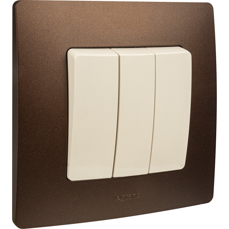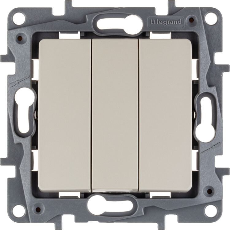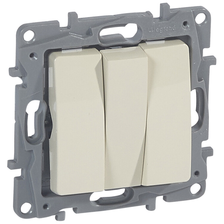 Выключатель трёхклавишный Legrand Etika для скрытого монтажа, номинальный ток 10 А, цвет слоновая кость.