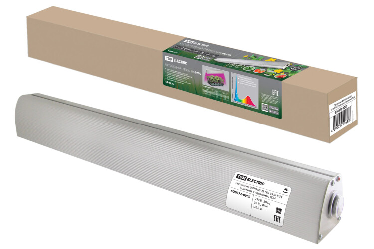Назначение:br/Предназначены для создания дополнительного освещения растений.br/Преимущества:br/Качественное отведение тепла и правильный выбор режима работы светодиодов обеспечивают высокую надежность и долгий срок службы светильников при использовании по 812 часов ежедневно около 10 лет.Светильники создают мощный световой поток с фотосинтетическим активным излучением более 80% (ФАР80%), который наиболее полно усваивается растениями.Два режима работы: дополнительная синяя досветка необходим на этапе выращивания рассады и основной полноспектральный для полноценного развития растений.Светильники можно размещать в непосредственной близости от растений, так как светодиоды не являются источником инфракрасного и ультрафиолетового излучения. Низкое тепловое излучение светильников не влияет на микроклимат в помещении, не является причиной интенсивного испарения влаги из почвы и не увеличивает число поливов.Различные способы крепления светильников: подвесной на тросах, настольный крепление на ножках, накладной монтаж к полкам стеллажей, к стене или потолку.br/Конструкция:br/Конструкция светильников обеспечивает защиту от проникновения пыли и влаги, степень защиты IP54.Установлены 2 линейки полноспектральных фитодиодов и 1 линейка диодов с дополнительным синим спектром. Встроенный драйвер.Светильники оснащены питающим проводом и переключателем режимов работы.br/Материалы:br/Корпус:Анодированный алюминийbr/Упаковка:br/Коробка из картонаbr/