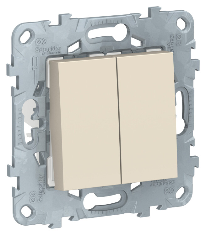 Переключатель двухклавишный Schneider Electric UNICA NEW (бежевый) перекрёстный без подсветки предназначен для сетей до 250 В на ток до 10 А.
