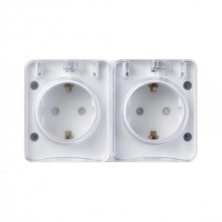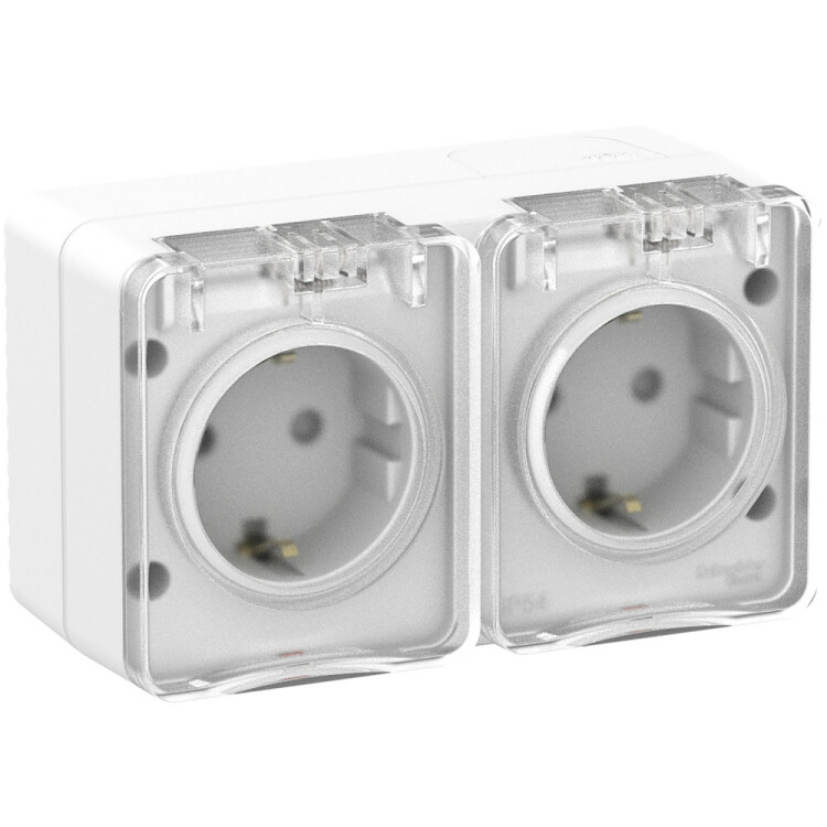 Розетка двойная с заземлением со шторками для открытого монтажа, 16А, 250В.