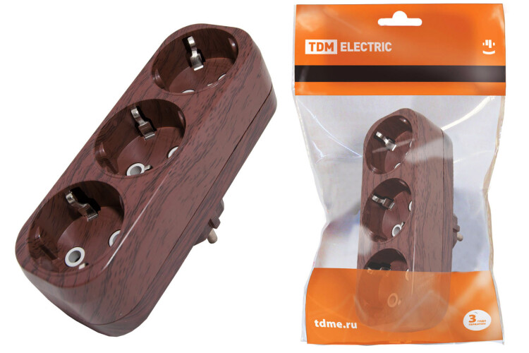 ЭКО Блок 3 гнезда б/з плоский 6А 250В бук TDM (10/50шт)