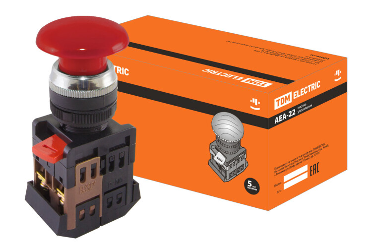 Кнопка AEА-22 "Грибок" красный d22мм 1з+1р TDM