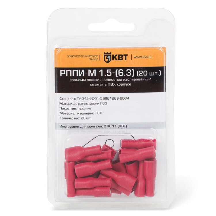 Разъем кабельный плоский полностью изолированный «мама» РППИ-М 1.5-(6.3) (20 шт) (КВТ)
