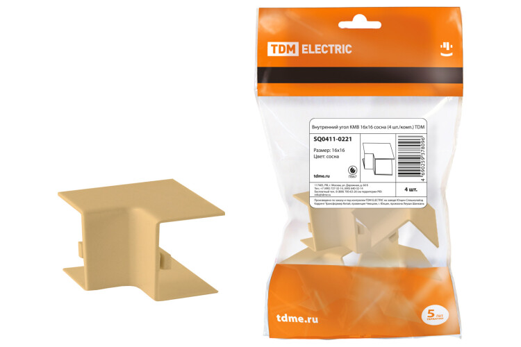 "TDM" КМВ Угол внутр. для кабель-канала сосна 16x16мм 4шт/уп