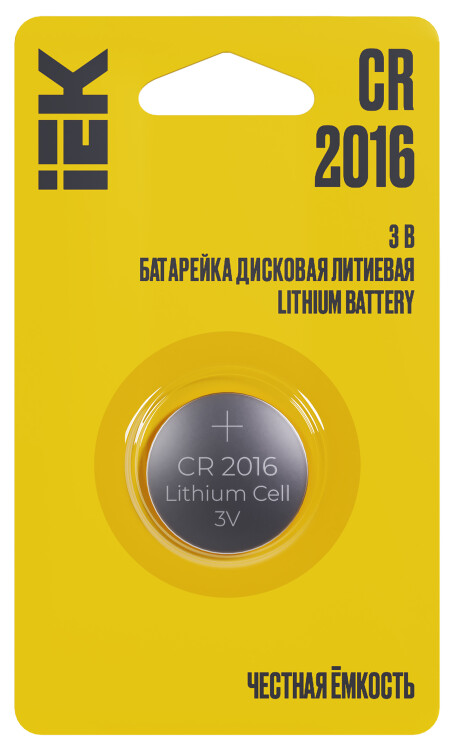 Батарейка дисковая литиевая IEK CR2016, 1 шт. на блистере.
