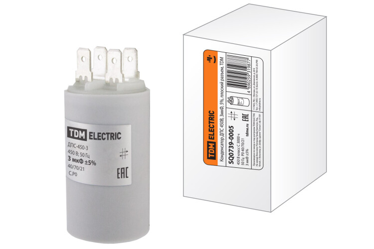 Применение:Бытовые приборы (кондиционеры, холодильники, насосные станции, пылесосы).Механизмы и оборудование (электрические приводы ворот, подъемники, тельферы, промышленные охлаждающие устройства и пр.) Материалы:Металлизированная полипропиленовая пленка.Корпус выполнен из пластика, не поддерживающего горение.Преимущества:Небольшие габариты при большой емкости.Устойчивость к высокому току пульсаций.Восстановление электрических свойств конденсаторов до исходного значения после местного пробоя в диэлектрике.Широкий диапазон рабочих температур: от -40 до +70 С. Назначение:Для использования в качестве емкостного сопротивления в цепи переменного тока.Для подключения трехфазных асинхронных двигателей с короткозамкнутым ротором к однофазной сети 230 В, 50 Гц. 0: