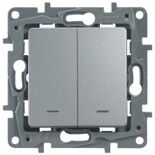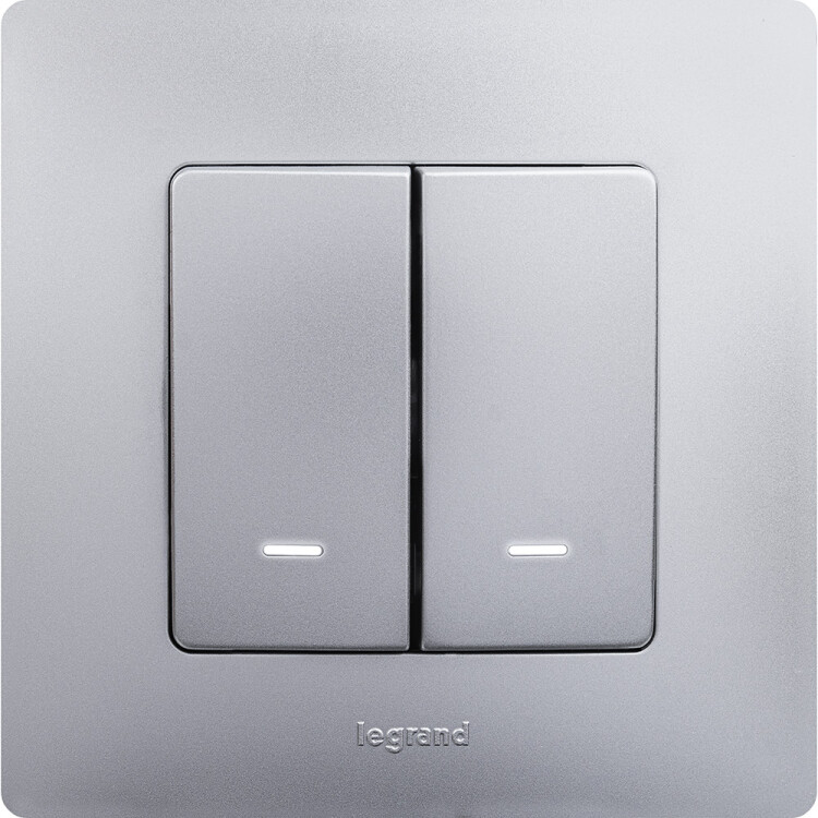 Выключатель двухклавишный с подсветкой/индикацией - Legrand Etika - 10А 250В безвинтовые зажимы - алюминий