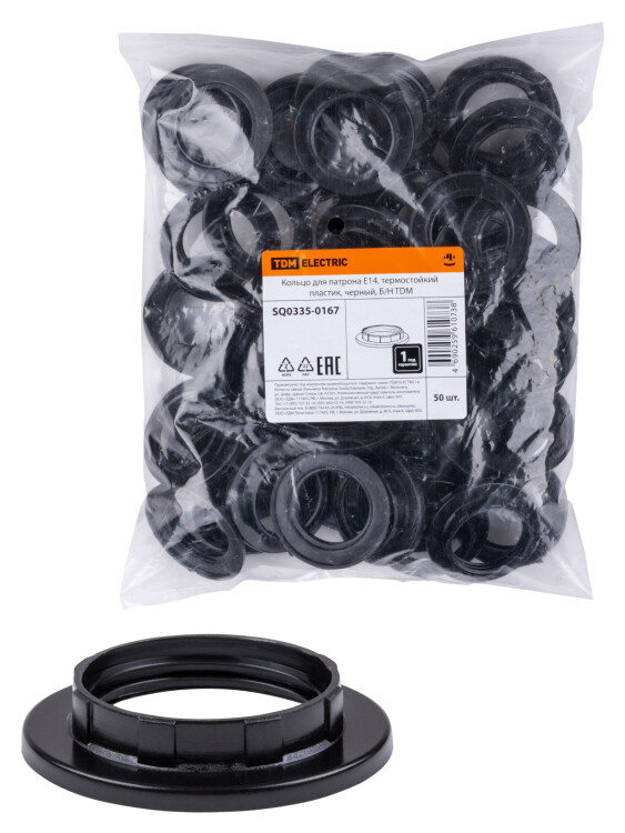 Кольцо для патрона Е14, термостойкий пластик, черный Б/Н TDM