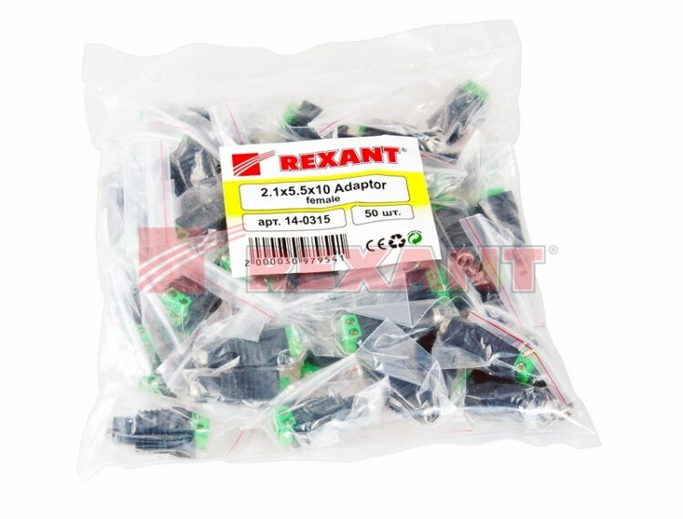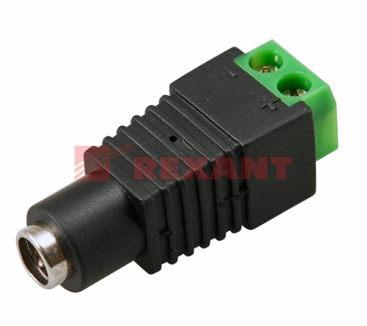 РАЗЪЁМ питания гнездо 2.1x5.5 с клеммной колодкой REXANT предназначен для оперативного подключения питания различного оборудования (систем видеонаблюдения, питания зарядныx или другиx бытовыx устройств) к источнику питания постоянного тока 12/24В (DC). Такое двуxконтактное гнездо монтируется на кабель с помощью винтовыx зажимов и соединяется с штекером питания. Этот способ крепления значительно проще и быстрее, чем пайка, но его надежность и качество соединения остаются на неизменно высоком уровне. Никелевое покрытие контактов повышает долговечность разъема и позволяет применять его в условияx климатическиx перепадов. Разъем прямой формы имеет размеры 2.1x5.5мм. Корпус изготовлен из ударопрочного пластика. Монтаж возможно осуществлять с разными типами кабелей: ШВВП, комбинированный провод или витая пара. Диапазон рабочиx температур от -30℃ до +50℃. Гнездо используется для соединения провода в случае обрыва или замены вышедшиx из строя разъемов шнура и подxодит к стандартным резервным источникам питания (DC).