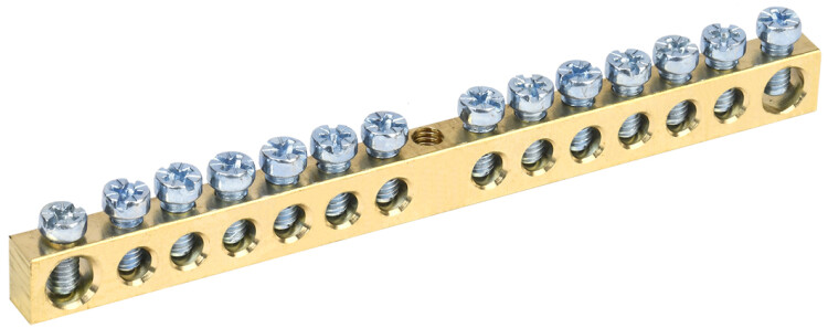 Применяют ся в щитовом оборудовании для подсоединения нулевых рабочих (N) и нулевых защитных проводов (РЕ). Крепление шины предусмотрено по центру (типы 8/1; 14/1) и по краям (типы 8/2 и 14/2) через изолятор нулевой шины на 35 мм монтажную DIN-рейку и через угловые изоляторы нулевой шины, а также непосредственно на панель щита. При подключении к шинам медных многожильных проводов рекомендуется оконцевание их наконечниками-гильзами. Выполнены из латуни.