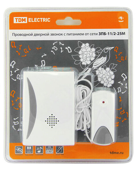 Применение:Используются в качестве дверных звонков или устройств внутреннего вызова. Преимущества:Бюджетное предложение на электротехническом рынке.Дальность работы беспроводных звонков 100-300 метров (на открытом пространстве).В ряде моделей имеется возможность разместить на кнопке номер квартиры и/или фамилию хозяина.В ряде моделей пользователь имеет возможность изменения кода звонка при порче/утере старой кнопки или для подключения дополнительной кнопки.В ассортименте имеются отдельно кнопки для проводных и беспроводных звонков, что позволит произвести замену при порче старой кнопки.Ряд моделей имеет кнопки со степенью защиты IP44, которые можно устанавливать на улице.Имеются исполнения с 2-мя кнопками (для разных выходов из дома) и с 2-мя звонками (для разных этажей или зданий: дом, гараж).Звонки упакованы в яркую блистерную упаковку, оформленную в корпоративных цветах TDM ELECTRIC, на каждом блистере есть информационные пиктограммы с характеристиками звонков.0: Применение:Используются в качестве дверных звонков или устройств внутреннего вызова. Преимущества:Бюджетное предложение на электротехническом рынке.Дальность работы беспроводных звонков 100-300 метров (на открытом пространстве).В ряде моделей имеется возможность разместить на кнопке номер квартиры и/или фамилию хозяина.В ряде моделей пользователь имеет возможность изменения кода звонка при порче/утере старой кнопки или для подключения дополнительной кнопки.В ассортименте имеются отдельно кнопки для проводных и беспроводных звонков, что позволит произвести замену при порче старой кнопки.Ряд моделей имеет кнопки со степенью защиты IP44, которые можно устанавливать на улице.Имеются исполнения с 2-мя кнопками (для разных выходов из дома) и с 2-мя звонками (для разных этажей или зданий: дом, гараж).Звонки упакованы в яркую блистерную упаковку, оформленную в корпоративных цветах TDM ELECTRIC, на каждом блистере есть информационные пиктограммы с характеристиками звонков.
