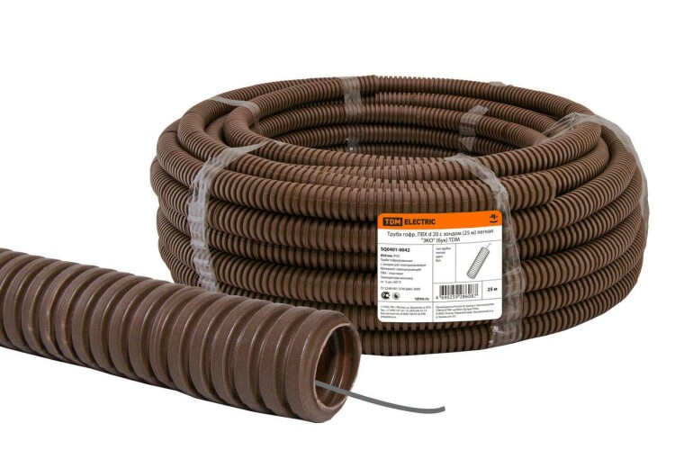 "TDM" Труба гофр. ПВХ бук легкая с зондом d20мм 25м/уп