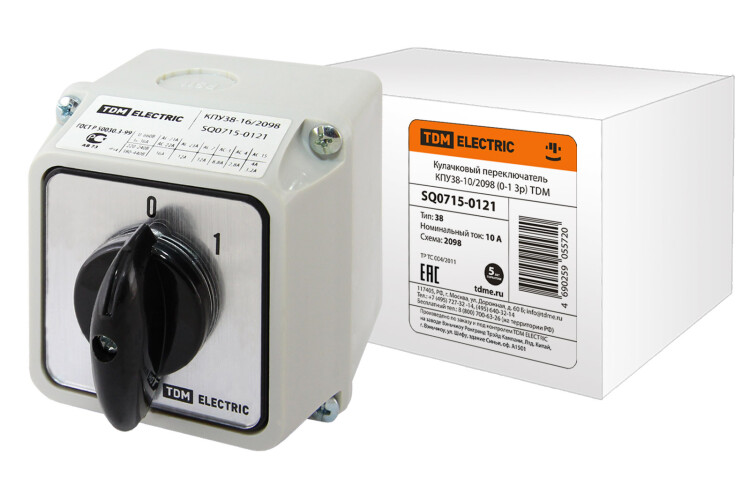 Применение:Как коммутационный элемент в щитах постоянного и переменного токовВ щитах управления АВР, двигательной нагрузкой, управления освещением, аварийного выключения, управление режимами для ТПУправление агрегатами и всевозможными приводами секционных выключателей, разъединителей, заземлителей на подстанцияхПереключение режима работы трансформатора в сварочном оборудованииУправление режимами работы ТЭНов в нагревательном оборудовании Материалы:Применение на контактах композита серебро-оксид кадмия позволяет использовать переключатели для прямого управления мощными электрическими нагрузками. Бокс переключателей КПУ изготовлен из негорючего самозатухающего пластикаПреимущества:Из широкого ассортимента разработанных коммутационных схем сейчас в ассортименте представлены 37 наиболее ходовых схем, которые покрывают 95% потребностей рынкаПотребитель имеет возможность приобрести отдельно защитный бокс IP54 для переключателей и собрать самостоятельно переключатель в боксеВ ассортименте имеются переключатели для ампермеров (1 исполнение) и для вольтметров (3 исполнения), которые позволяют при помощи однофазного измерительного прибора и данного переключателя проводить измерения токов и напряжений в трехфазных сетяхВ ассортименте есть многопозиционные переключатели 0-1-2-3 и 0-1-2-3-4, которые могут применяться для переключения нагрузки на разные режимы работыВ ассортименте имеются КПУ с коммутационными схемами, характерными как для отечественных производителей (без перемычки между выходными контакта ми), так и для зарубежных производителей (с перемычкой между выходными контактами)Ценa кулачковых переключателей TDM Electric ниже аналогов других отечественных и зарубежных производителей Назначение:Для управления и коммутации электрической нагрузки, схем управления и др. Конструкция:Переключатель исполнения КПУ11 монтируется на переднюю панель щитка 4-мя болтамиПереключатель исполнения КПУ38 в защитном боксе имеет степень защиты IP54 и крепится к монтажной поверхности задней стенкой. Крепление рукоятки и передней панели к корпусу одним болтом обеспечивает их быстрый съем и быстрый монтаж переключателя на переднюю панель щитка. Винтовые зажимы для подключения подводящих проводников обеспечивают их надежную фиксацию
