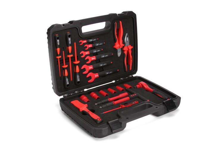 Для работы под напряжением до 1000 В.Состав набора: диэлектр. трещоточный ключ 200 мм.диэлектр. Т-образная рукоятка 200 мм.диэлектр. удлинитель 150 мм.диэлектр. шестигранная головка 3/8 8 мм.диэлектр. шестигранная головка 3/8 10 мм.диэлектр. шестигранная головка 3/8 12 мм.диэлектр. шестигранная головка 3/8 13 мм.диэлектр. шестигранная головка 3/8 17 мм.диэлектр. шестигранная головка 3/8 19 мм.диэлектр. однорожковый ключ 8 мм.диэлектр. однорожковый ключ 10 мм.диэлектр. однорожковый ключ 12 мм.диэлектр. однорожковый ключ 13 мм.диэлектр. однорожковый ключ 17 мм.диэлектр. однорожковый ключ 19 мм.диэлектр. нож монтерский НМИ-05.диэлектр. пассатижи 180 мм.диэлектр. бокорезы 160 мм.диэлектр. отвертка: шлиц 4х100.диэлектр. отвертка: шлиц 5.5х125.диэлектр. отвертка: PH1x80.диэлектр. отвертка: PH2x100.отвертка-индикатор.Полный набор самых востребованных инструментов для работы под напряжением.Упаковка: пластиковый кейс.Габариты упаковки: 450х320х105 мм.Вес набора: 3.90 кг.