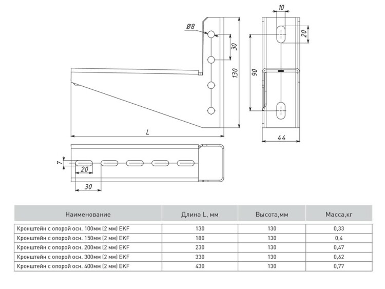 Кронштейн с опорой основание 200 мм (2 мм) EKF