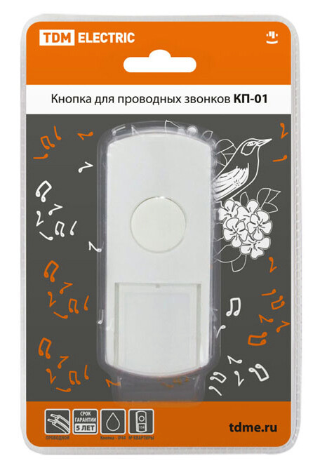Применение:Используются в качестве дверных звонков или устройств внутреннего вызова. Преимущества:Бюджетное предложение на электротехническом рынке.Дальность работы беспроводных звонков 100-300 метров (на открытом пространстве).В ряде моделей имеется возможность разместить на кнопке номер квартиры и/или фамилию хозяина.В ряде моделей пользователь имеет возможность изменения кода звонка при порче/утере старой кнопки или для подключения дополнительной кнопки.В ассортименте имеются отдельно кнопки для проводных и беспроводных звонков, что позволит произвести замену при порче старой кнопки.Ряд моделей имеет кнопки со степенью защиты IP44, которые можно устанавливать на улице.Имеются исполнения с 2-мя кнопками (для разных выходов из дома) и с 2-мя звонками (для разных этажей или зданий: дом, гараж).Звонки упакованы в яркую блистерную упаковку, оформленную в корпоративных цветах TDM ELECTRIC, на каждом блистере есть информационные пиктограммы с характеристиками звонков.0: Применение:Используются в качестве дверных звонков или устройств внутреннего вызова. Преимущества:Бюджетное предложение на электротехническом рынке.Дальность работы беспроводных звонков 100-300 метров (на открытом пространстве).В ряде моделей имеется возможность разместить на кнопке номер квартиры и/или фамилию хозяина.В ряде моделей пользователь имеет возможность изменения кода звонка при порче/утере старой кнопки или для подключения дополнительной кнопки.В ассортименте имеются отдельно кнопки для проводных и беспроводных звонков, что позволит произвести замену при порче старой кнопки.Ряд моделей имеет кнопки со степенью защиты IP44, которые можно устанавливать на улице.Имеются исполнения с 2-мя кнопками (для разных выходов из дома) и с 2-мя звонками (для разных этажей или зданий: дом, гараж).Звонки упакованы в яркую блистерную упаковку, оформленную в корпоративных цветах TDM ELECTRIC, на каждом блистере есть информационные пиктограммы с характеристиками звонков.