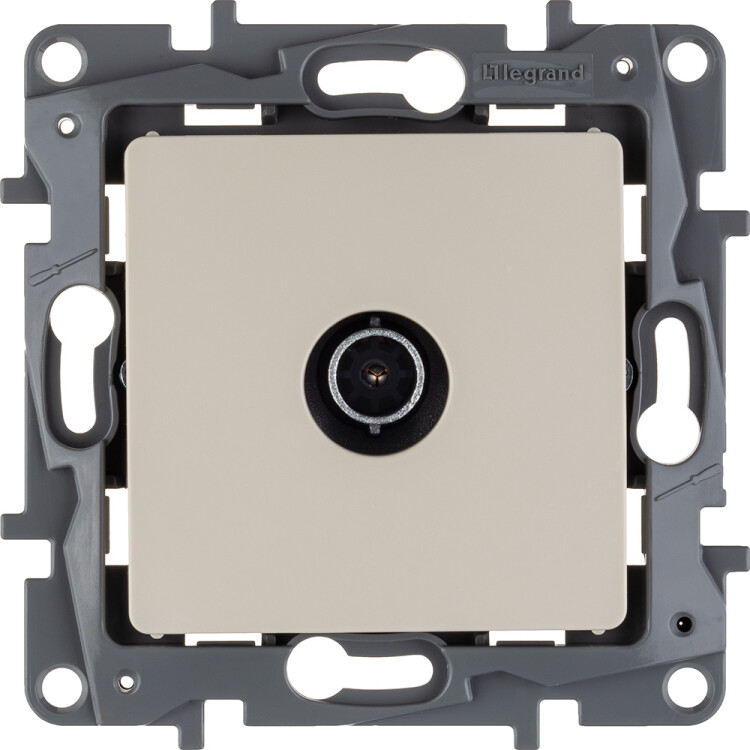 ТВ-розетка тип "звезда" Legrand Etika, цвет слоновая кость.Используется для подключения одного ТВ приемника к антенне, а также для организации телевизионной сети по схеме "звезда", когда к каждому телевизору прокладывается своя линия от источника сигнала.