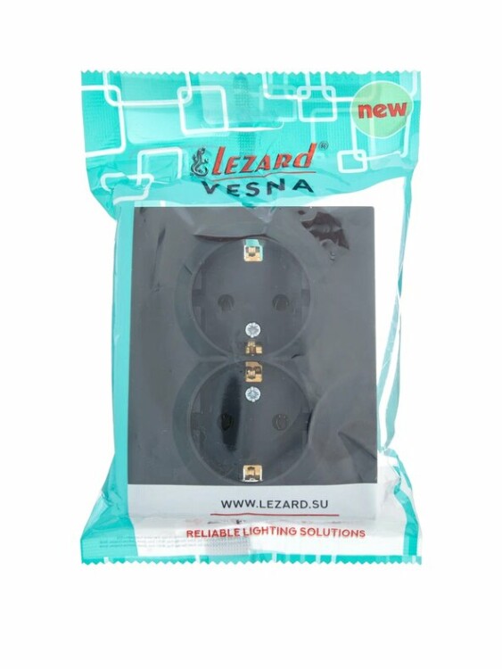 VESNA Розетка 2-ая с/з ПБТ чёрный бархат LEZARD (10шт/120шт)
