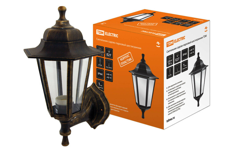 Светильник садово-парковый НБУ 06-60-001 шестигранник, настенный, пластик, бронза TDM