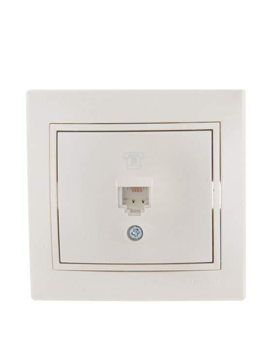 MIRA Розетка телефонная евро жемчужно-белый перламутр со вставкой LEZARD (10шт/120шт)
