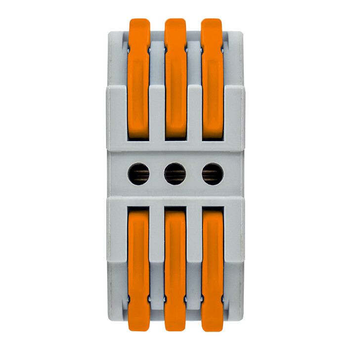 Строительно-монтажные клеммы EKF предназначены для соединения и разветвления медных проводов до 4 мм². Клеммы отличаются повышенной прочностью и рассчитаны на многократное использование. Контактная часть из луженной меди повышает пропускную способность клеммы. Клеммы СМК обеспечивают простой и быстрый монтаж, имеют уникальный на российском рынке дизайн. Клеммы СМК 222 проходные предназначены для многоразового соединения одножильных и многожильных проводников из меди в электрических цепях переменного тока с частотой 50 Гц напряжением до 400 В. Клеммы можно использовать при температуре от –40 до +40° C.