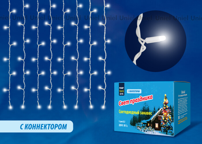 Входное напряжение, В - 220-240; Диапазон рабочих температур, °С - -30 +35; Длина, м - 1,5; Класс защиты, IP - 67; Количество светодиодов, шт - 160; Мощность, Вт - 7,5; Размеры, мм - 1500*1500; Свет - белый; Срок гарантии - 12 месяцев; Срок годности - не ограничен; Срок службы, ч - 30000; Тип - занавес; Частота, Гц - 50-60