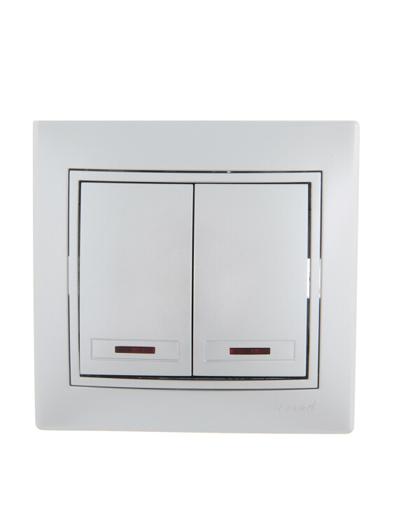 MIRA Выключатель 2-кл. с подсветкой металлик серый со вставкой LEZARD (10шт/120шт)