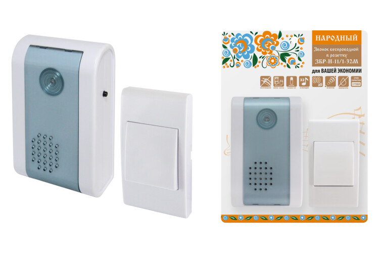 НАРОДНАЯ Звонок беспроводной в розетку 32 мелодии кнопка IP30 AC 230В ЗБР-Н-11/1-32М TDM