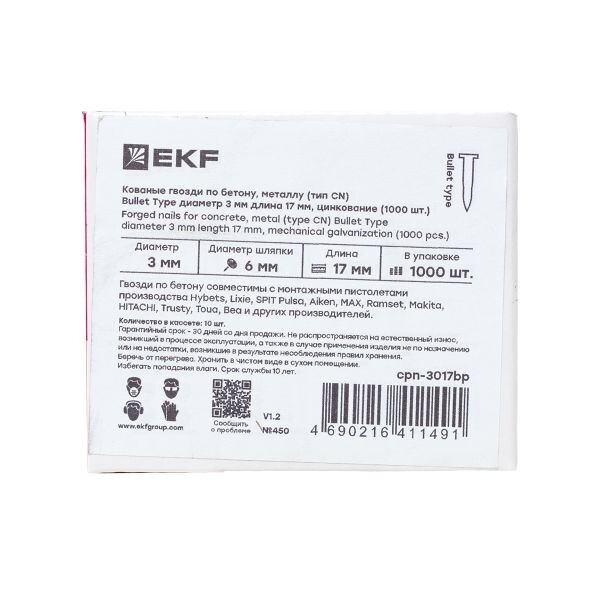 Кованые гвозди по бетону, металлу предназначены для моментальной пристрелки элементов крепления с помощью монтажного пистолета. Диаметр стержня 3 мм, длина гвоздя - 17 мм. Стержень - кованный, форма наконечника - оживальная. Покрытие нанесено механически.
