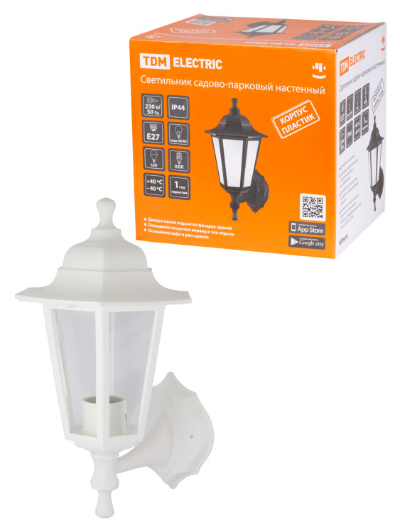 Светильник садово-парковый НБУ 06-60-001 шестигранник, настенный, пластик, белый TDM